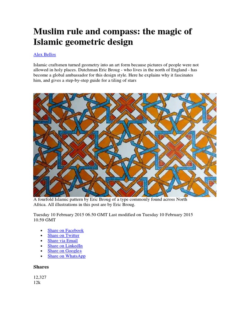 - The Meticulous Beauty Of Islamic Patterns And How To Create Them Check The Tutorials Arch2O Com - 100%(9)100% Found This Document Useful (9 Votes).